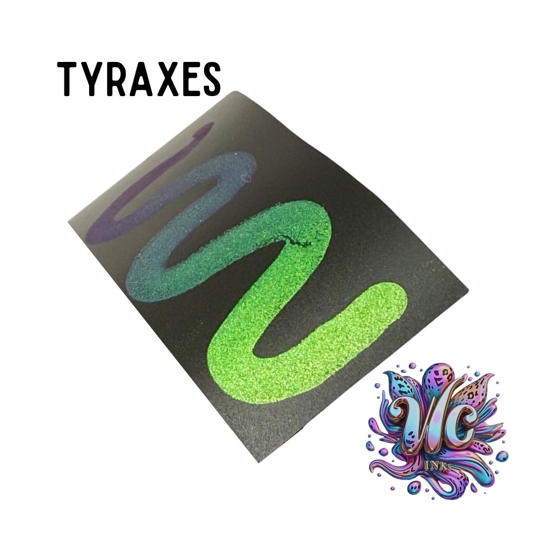Tyraxes is a stunning color-shift ink from our MultiChrome Collection. MultiChromes are chrome-based alcohol inks that shift beautifully between multiple hues, giving your projects a bold metallic appearance that changes color from every angle.